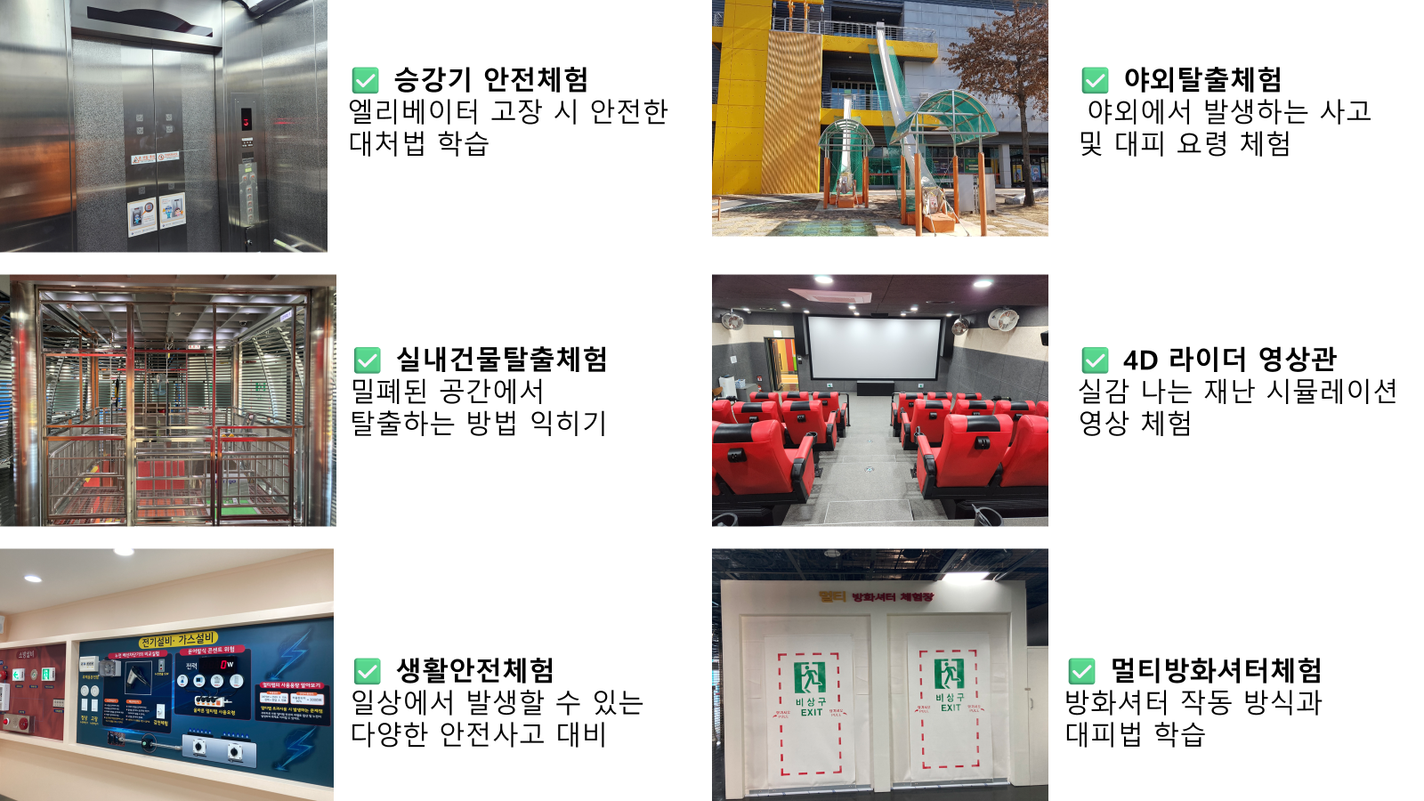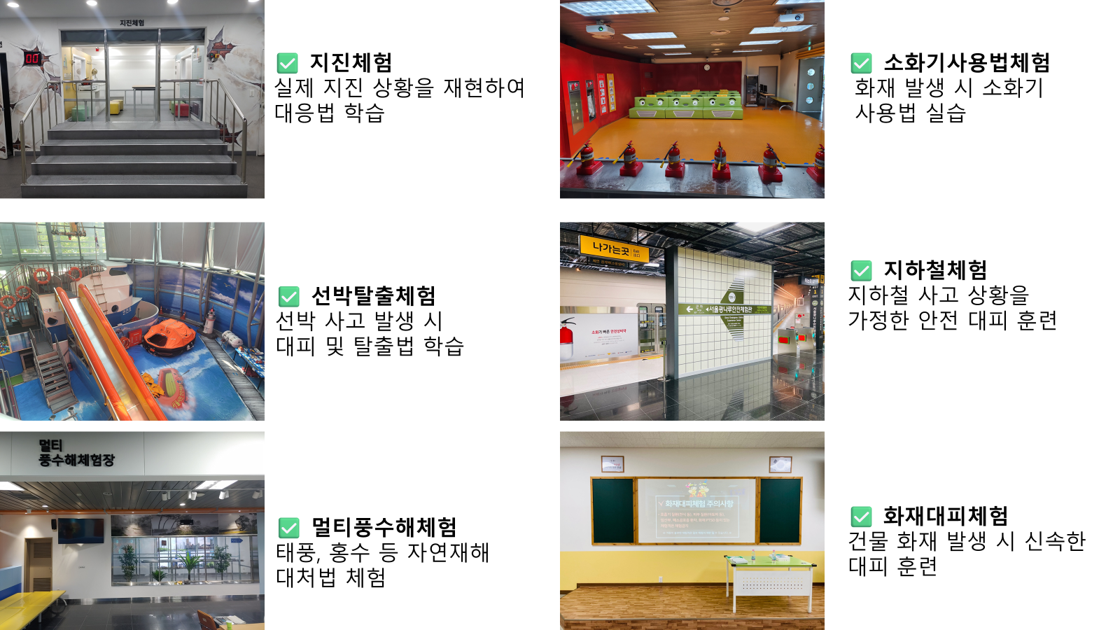광나루 안전 체험관 각종재난 상황을 가상으로 일반시민들이 직접 체험하면서 안전교육을 받을 수 있는 국내 최초의 재난 체험관